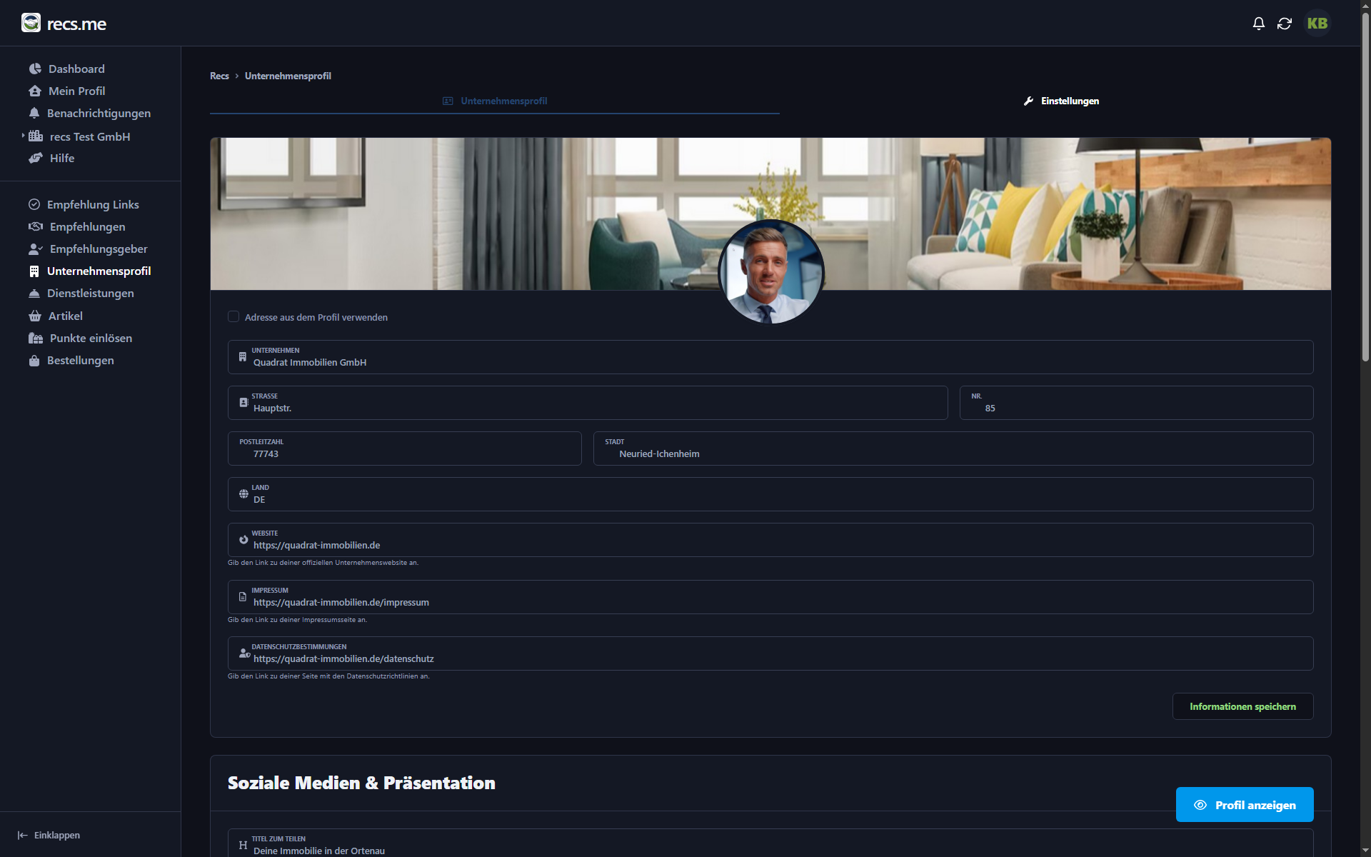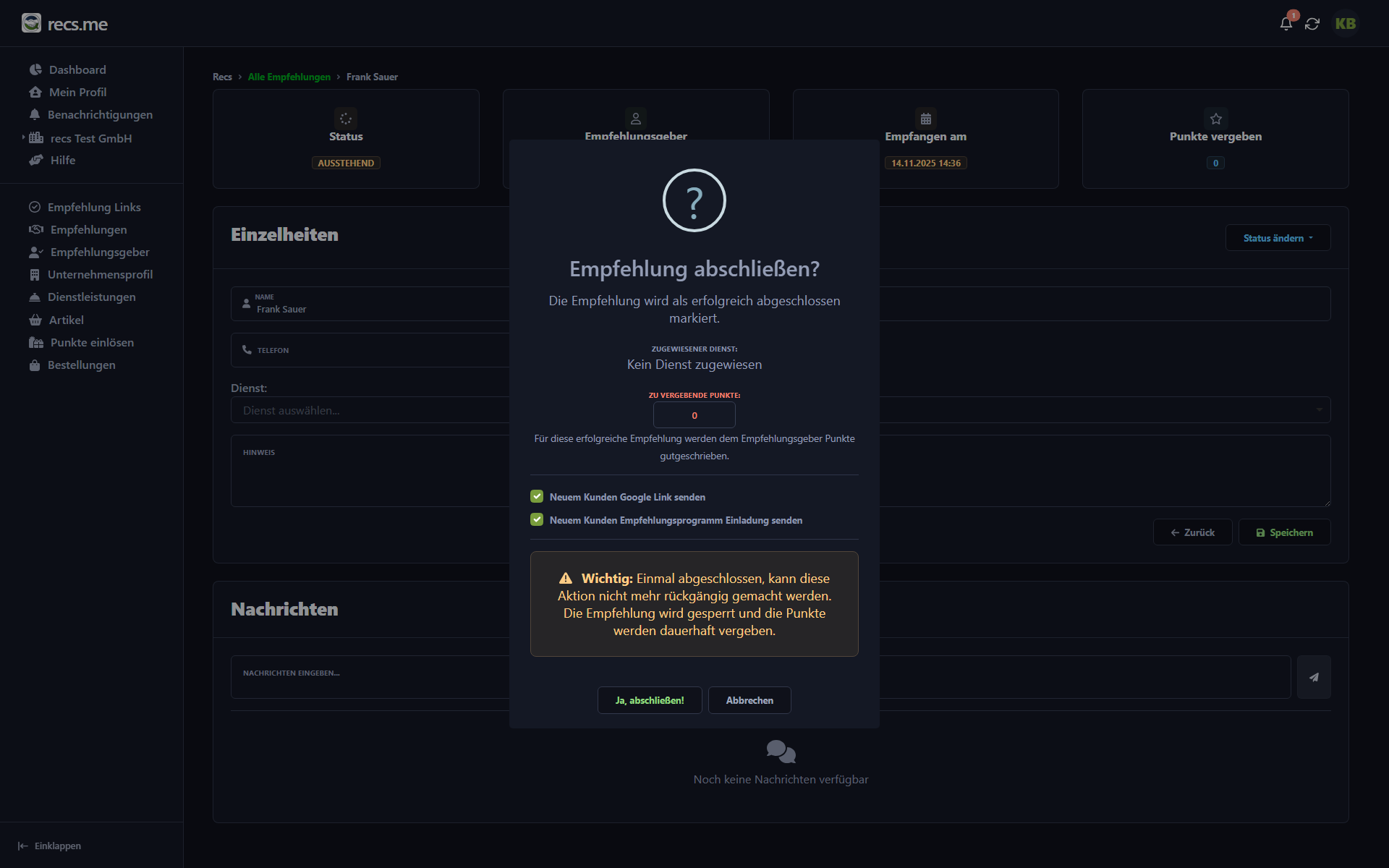 Mit recs.me wird Empfehlungsmarketing planbar: Gewinne neue Kunden über dein eigenes Empfehlungsprogramm und mach Wachstum unabhängig von Kaltakquise oder externen Marketingdiensten.